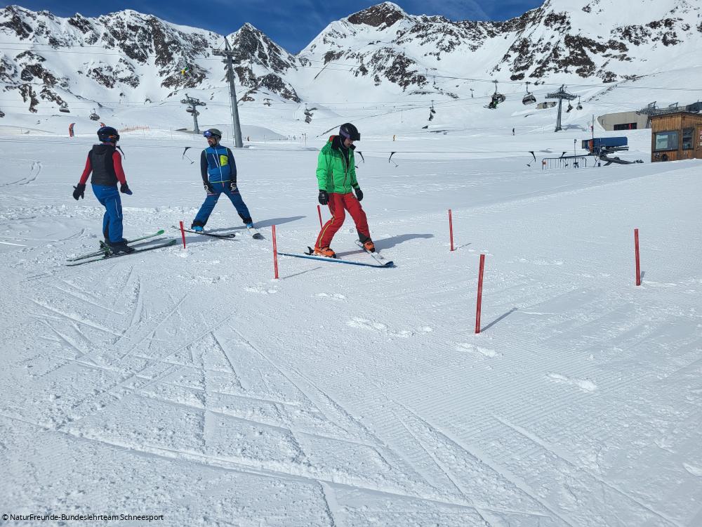 Mitglieder des Bundeslehrteams Ski alpin der NaturFreunde Deutschlands haben letztes Wochenende Inhalte für neue NaturFreunde-Schneesport-Schulungen getestet, die Anfang nächster Saison stattfinden werden. Dabei ging es zum einen um Inhalte der Landeslehrteamschulung, zum anderen wurden neue Materialien für Kinderskikurse getestet.
