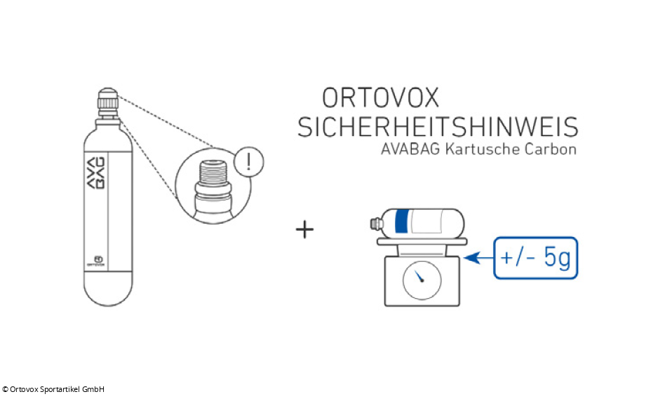 Ortovox weist ausdrücklich darauf hin, dass das Gewicht der Kartusche vor jedem Einsatz eines Avabag-Airbag-Rucksacks mittels Wiegeprüfung unbedingt zu überprüfen sei. Eine detaillierte Beschreibung dieser Prüfung befinde sich in der Bedienungsanleitung zu jedem AVABAG-Airbag-Rucksack.